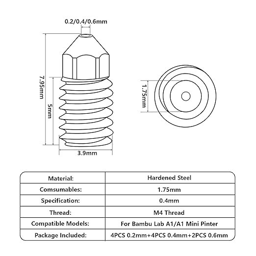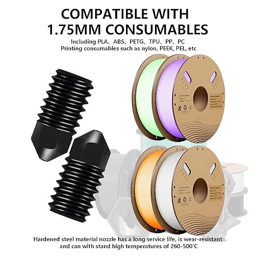 Adquirir esta punta enroscable es una decisión de sabiduría. Disfruta de la versatilidad de imprimir PLA, PETG, ABS y materiales compuestos sin miedo a arruinar el orificio de salida.