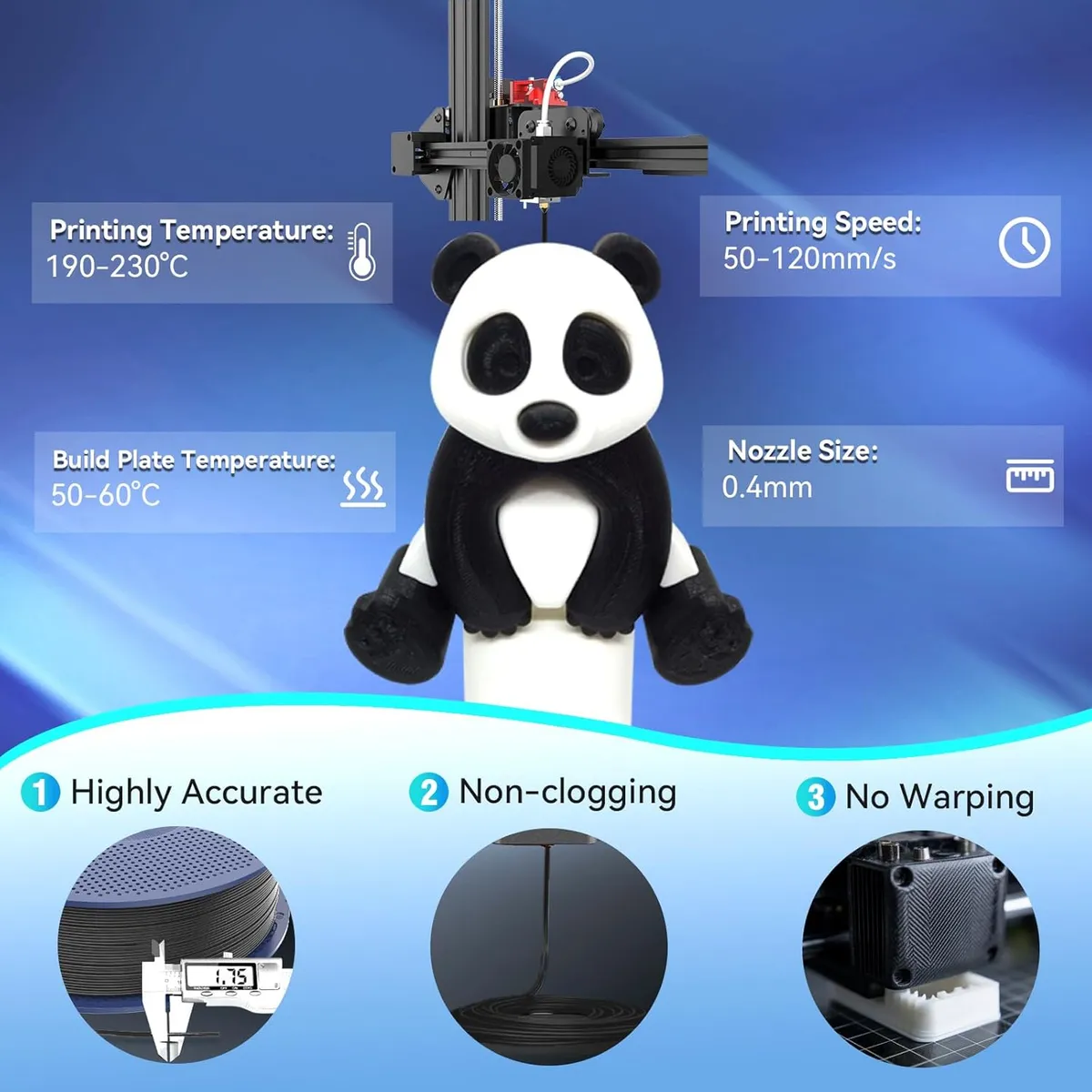 Esta característica es la clave que permite su compatibilidad con sistemas de alimentación Bowden y Directo, ofreciendo una experiencia de impresión serena, sin los atascos frustrantes típicos de los flexibles más blandos.