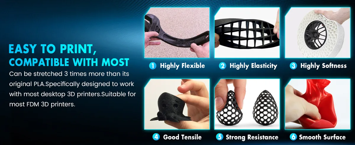 El Filamento TPU Alta Velocidad imprime 3 veces más rápido. Dureza 95A compatible con Bambu Lab AMS y carrete reutilizable. ¡Flexibilidad líder aquí!